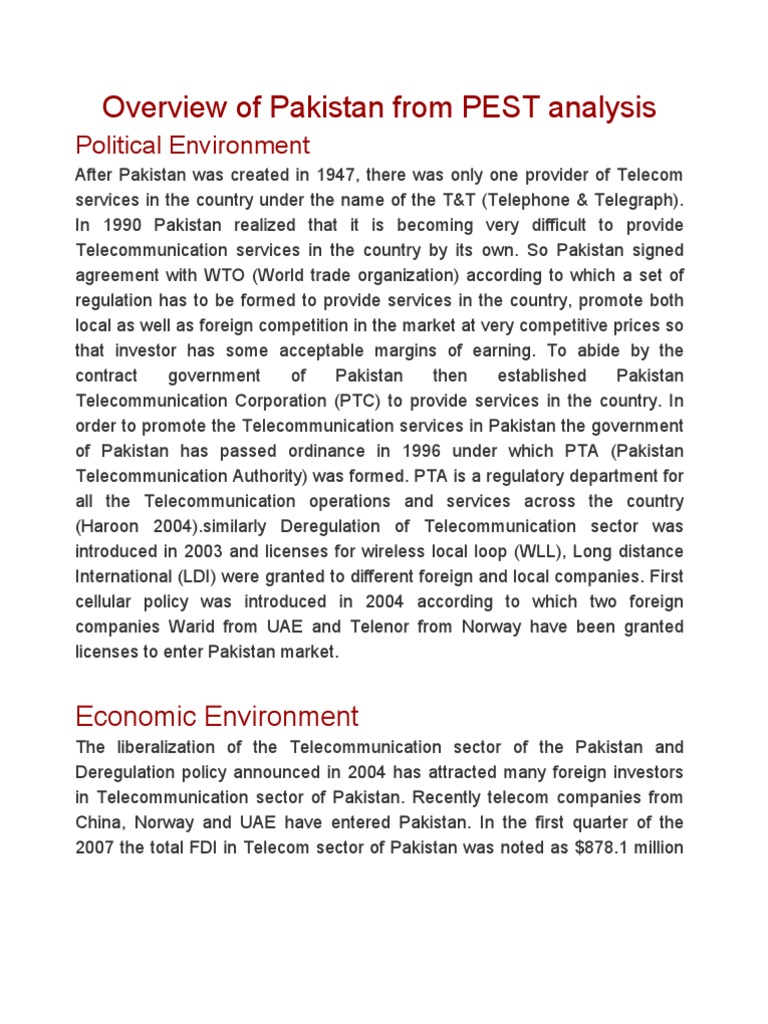 Share of the textile sector in pakistan's economy, along with its contribution to exports, employment, foreign exchange earnings, investment and value added in. Read this essay on pest analysis of pakistan. Pest analysis a pest (political, economic, social and technological) analysis is a major part of the environmental scanning section of strategic management and it is used… the quality of a product or service that a business offers. Cotton bales increase from 1.1million bales in 1947 to 10 million bales by 2000. Putting it all together in a final pest analysis.
