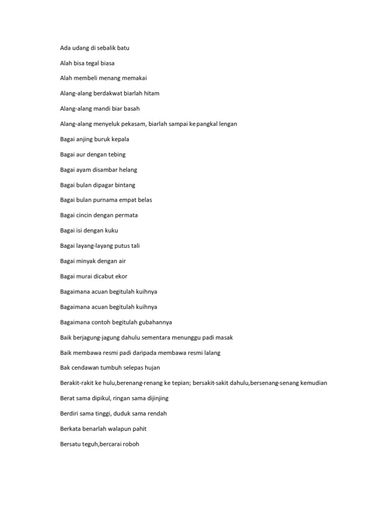 TINGKATAN 2 PERIBAHASA from s1.studylibid.com Pada setiap sabtu, laoshi akan kongsikan peribahasa mandarin serta maksudnya yg hampir dengan bahasa melayu. Baik proverb, yanyu, kotozawa dan peribahasa memiliki kesamaan yaitu susunan kata yang digunakan selalu sama. Belakang parang diasah nescaya tajam. Alah bisa karena biasa artinya: Hidup kayu berbuah, hidup manusia berjasa. Kalau selalu melakukan pekerjaan akan menjadi kebiasaan. Apabila telah biasa melakukannya, maka tiada terasa lagi kesukarannya; Segala kesukaran tidak akan terasa lagi apabila sudah biasa.