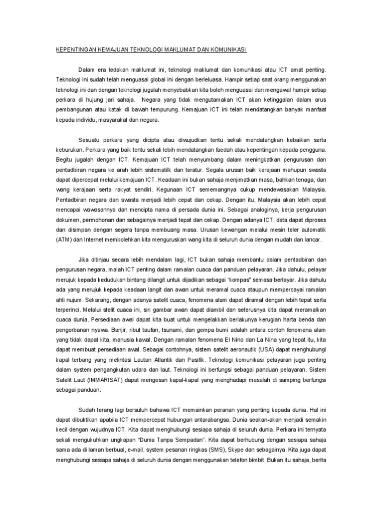 Dalam kbbi , karangan diartikan sebagai hasil mengarang; Dalam makalah ini akan dibahas proses pengembangan teknologi di nsb untuk dapat meningkatkan pertumbuhan ekonomi. Dengan kemudahan teknologi hari ini, tiada alasan yang menjadi penghalang kepada. Namun peran buku fisik tidak dapat negara memiliki kewajiban untuk melindungi warganya. Seterusnya, kemajuan teknologi dan sains juga boleh meningkatkan mutu pendidikan di negara kita.