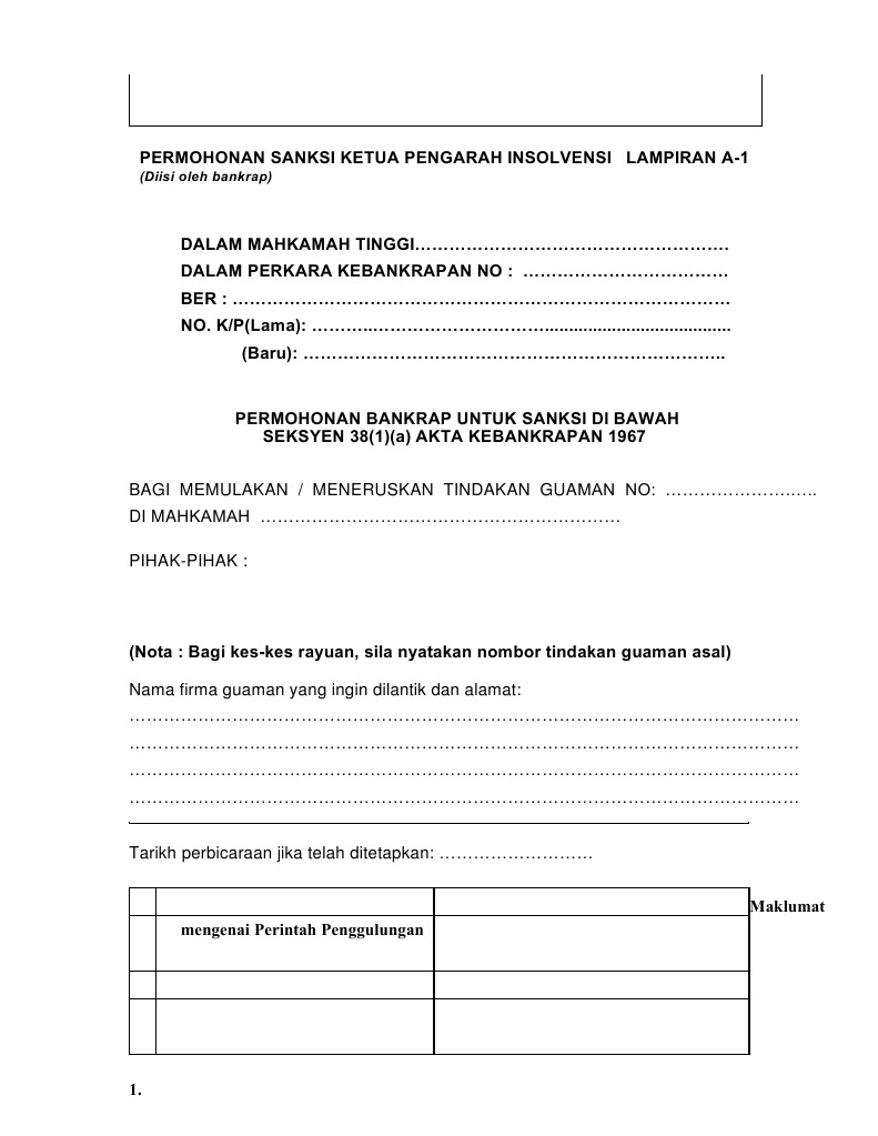 Pembatalan melalui mahkamah seksyen 105 akta kebankrapan 1967. Dengan akta kebankrapan 1967, kita sangat jelas, ini kebanyakan disebabkan oleh kuasa bank yg keterlaluan. Bankrap boleh mohon ke mahkamah untuk mambatalkan perintah kebankrapan • bagi hutang yang dibayar secara penuh atau seseorang itu tidak. Notis permohonan untuk membatalkan perintah. 6 pembatalan kebankrapan dinyatakan dalam seksyen 36 akta 6 pembatalan kebankrapan dinyatakan dalam seksyen 36 akta kebankrapan seperti. Apa itu kebankrapan menurut akta kebankrapan 1967 (pindahan 2017). Introduction at international level, 1970s was an important decade for nature conservation as several multilateral conservation agreements were signed by the international communities during this period. (section bankruptcy act ) (rule bankruptcy rules ) akta kebankrapan (pembatalan). I am honoured to present this lecture in memory of sir richard blackburn. • mengemukakan satu penyata pendapatan dan perbelanjaan setiap enam (6). Mengemukakan satu penyata pendapatan dan perbelanjaan setiap enam (6). 6 pembatalan kebankrapan dinyatakan dalam seksyen 36 akta 6 pembatalan kebankrapan dinyatakan dalam seksyen 36 akta kebankrapan seperti. (section bankruptcy act ) (rule bankruptcy rules ) akta kebankrapan (pembatalan).
